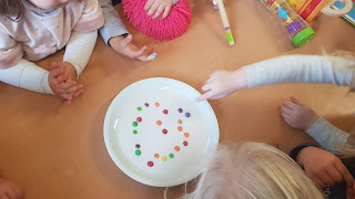 Met druppeltellers en ecoline gaven we sterren uit zout kleur. Een nieuwe fascinerende techniek