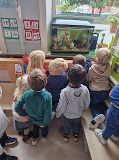 Nadat we het aquarium hadden bekeken in de natuurklas, maakten we in de klas ook één met ecoline.