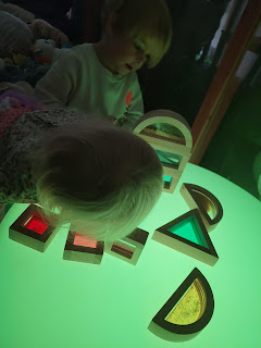 Aan de slag met gelzakjes en herfstfiguren aan de lichttafel.