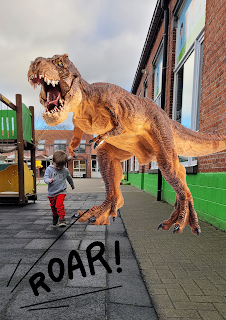 Je ziet het misschien niet goed, maar hier werd met boomschijven een dinopad gemaakt dat daarna veranderde in een zebrapad.